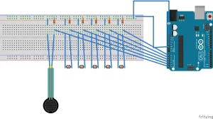 But when I finished and played, I found although it was easier to generate sounds than keyboard, it was hard to create music, as creating needed inspiration and coincidence (I believe). I could hardly break the music patten I have done, as I’ve gotten used to the sequence of tapping fingers. I just wondered whether I could design some instruments which was not only easy to use, but also could provide inspirations. Beside, when coming to instruments, it is not for easy, it is more for fun and playful. I think I should consider more playful elements or gestures as well. So I designed another instrument.