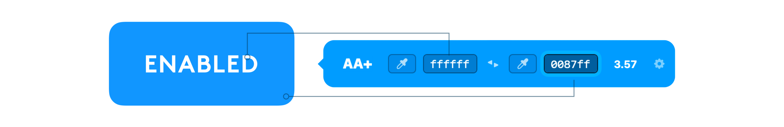 WCAG 2.0 level AA requires a contrast ratio of at least 4.5:1 for normal text and 3:1 for large text. WCAG 2.1 requires a contrast ratio of at least 3:1 for graphics and user interface components (such as form input borders). Large text is defined as 14 point (typically 18.66px) and bold or larger, or 18 point (typically 24px) or larger.